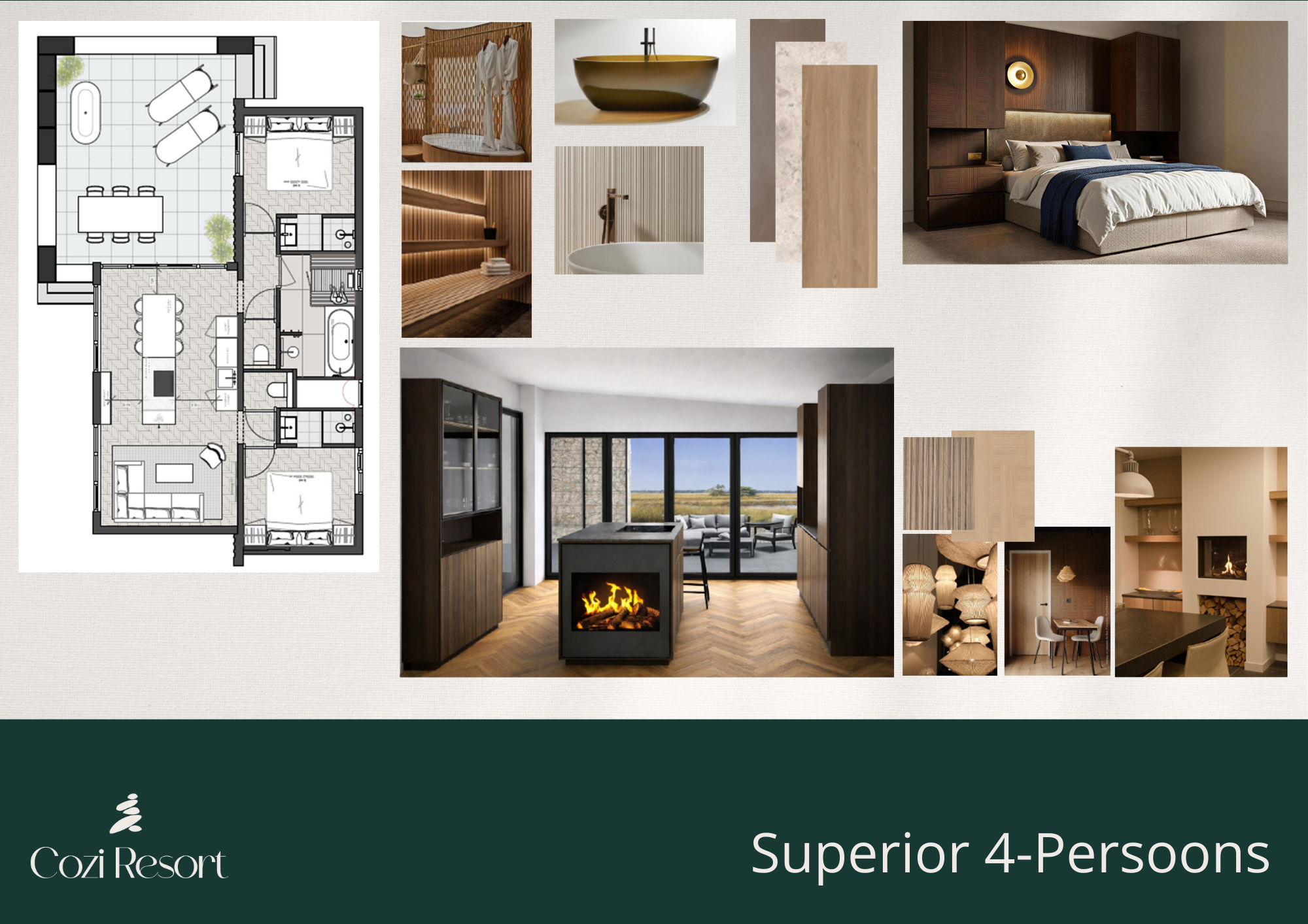 Cozi Resort: 75 luxe vrijstaande woningen (2–6 personen) met privé wellness (bad, sunshower en/of sauna) en buitenfaciliteiten zoals hottub of jacuzzi, 14+.