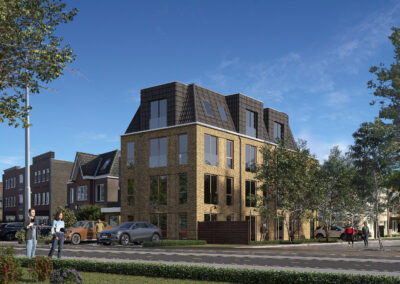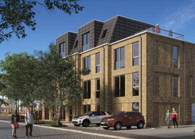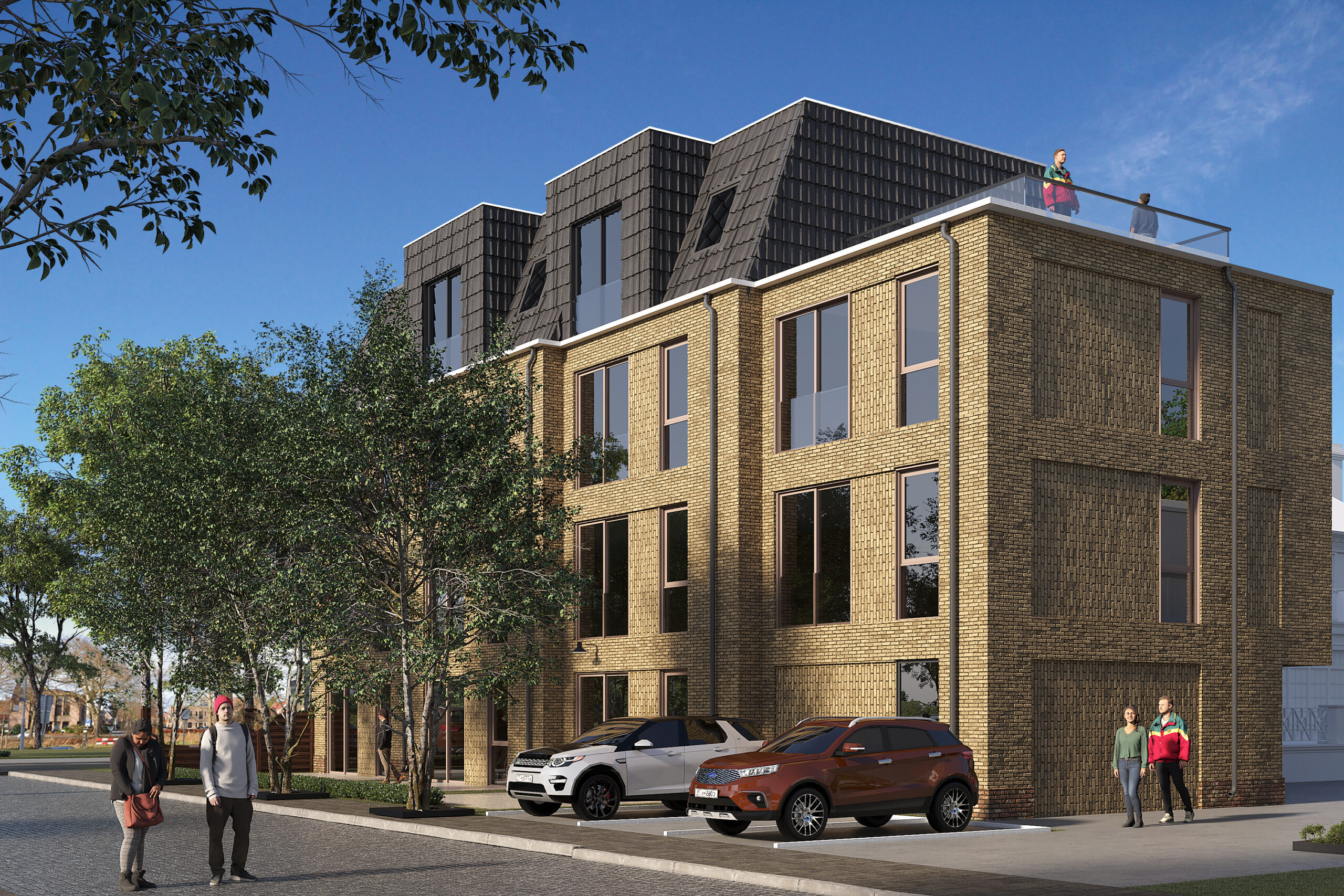 Het doel is om er een nieuwbouw appartementengebouw met 14 woningen van ca. 40 m2 GO met eigen tuin en gezamenlijk terras, te ontwikkelen. Het complex biedt ook parkeerplaatsen op eigen terrein.
